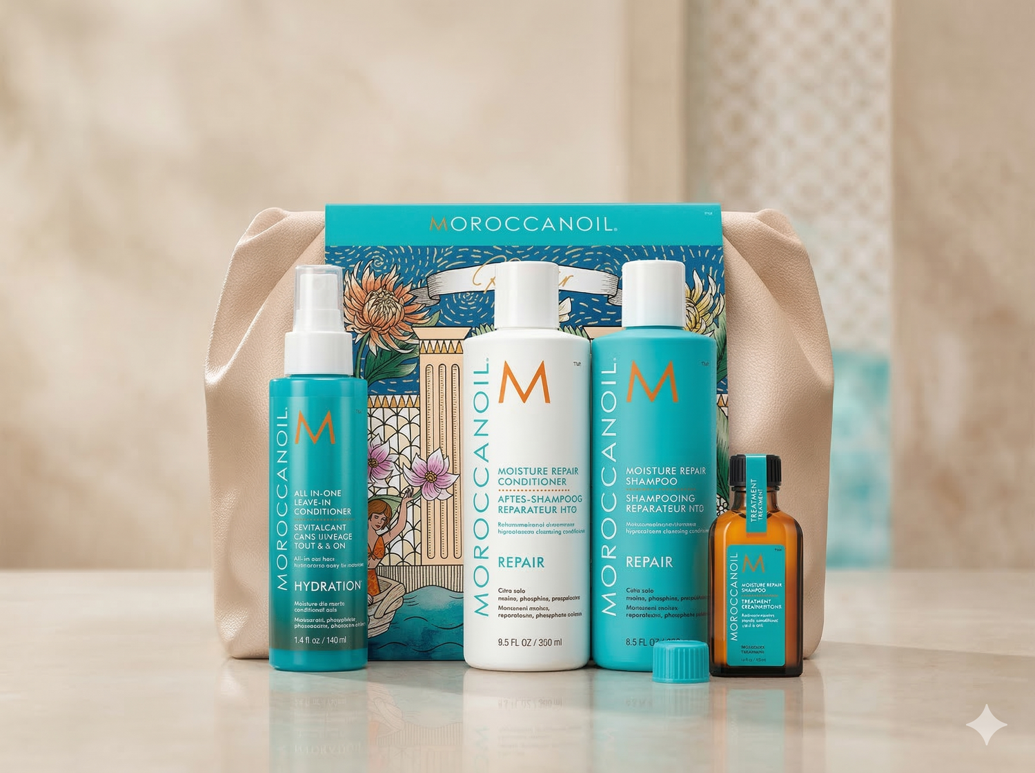 O Kit Moroccanoil Repair oferece uma rotina completa para restaurar cabelos danificados, devolvendo hidratação, maciez e vitalidade desde a primeira aplicação. Com óleo de argan e ativos reparadores, é o cuidado ideal para fios mais saudáveis e disciplinados.